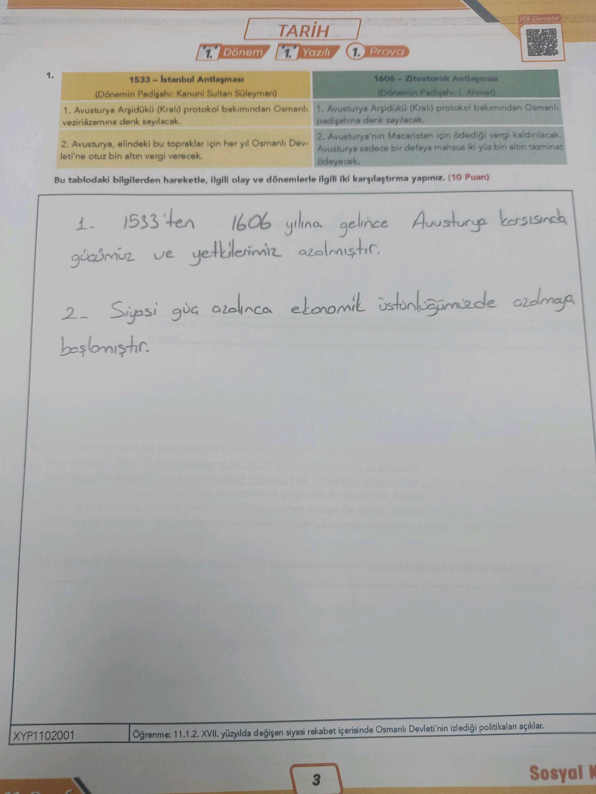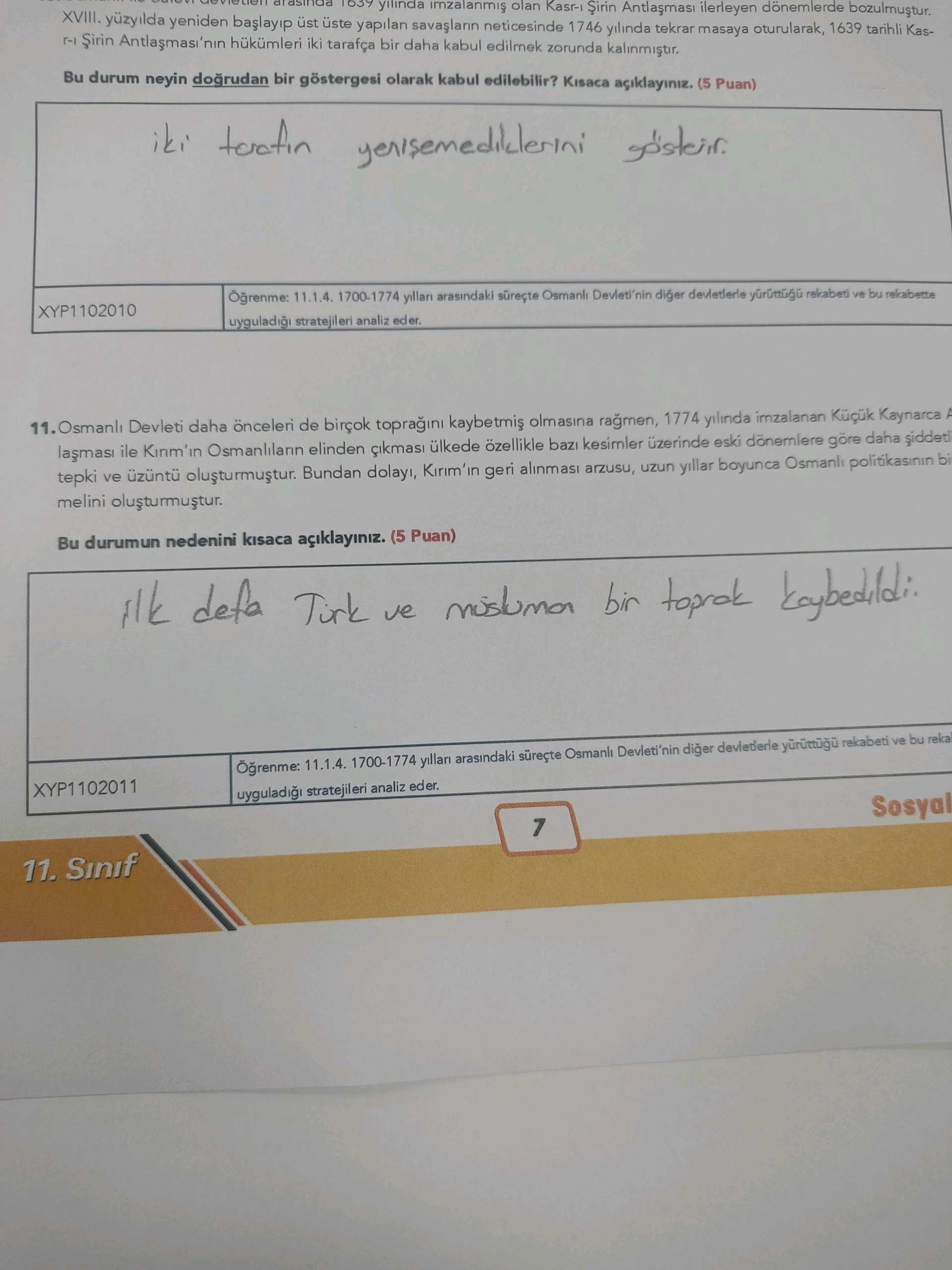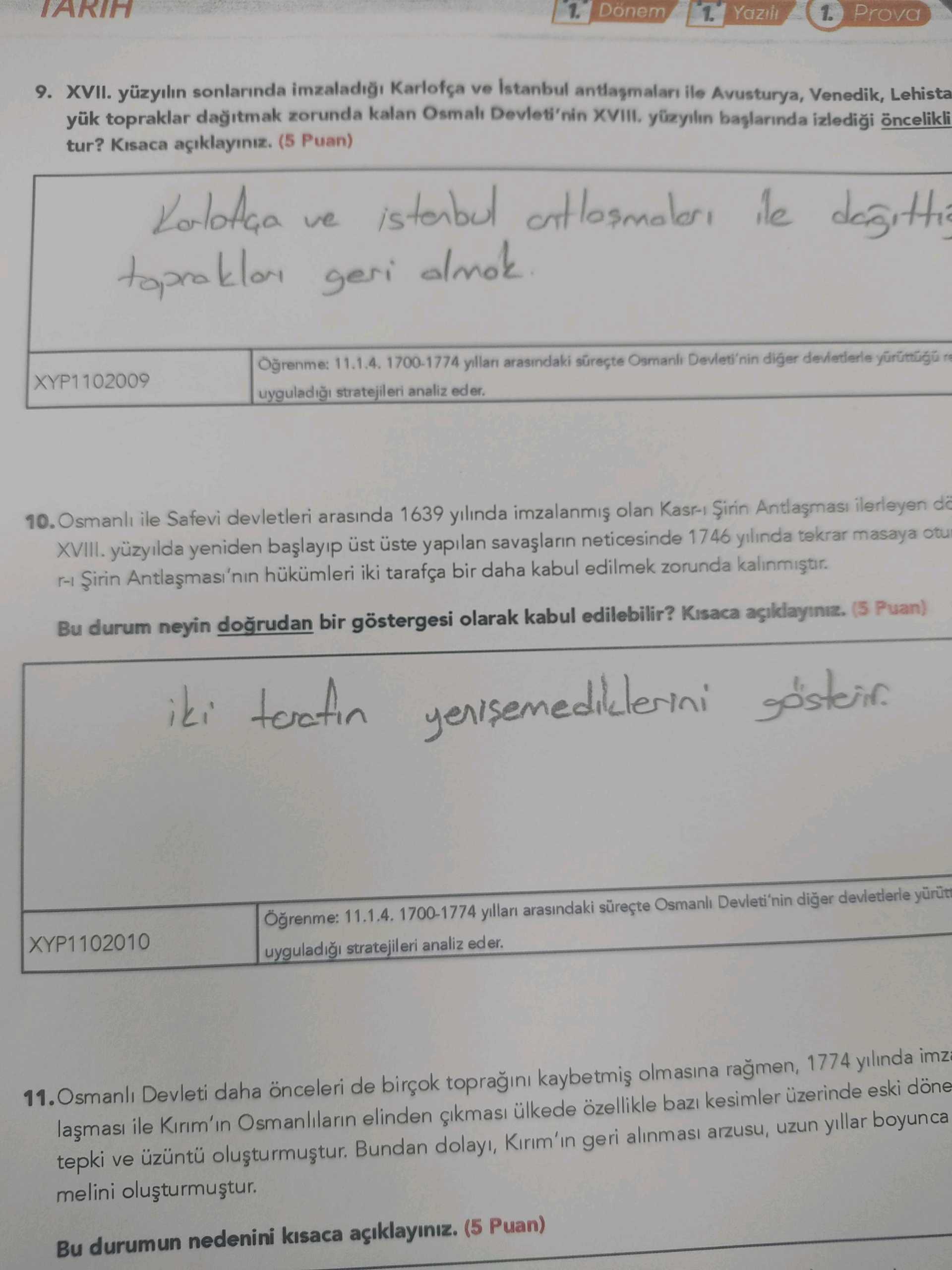 1. Dönem 1. Yazılı 1. Prova 11. Soru