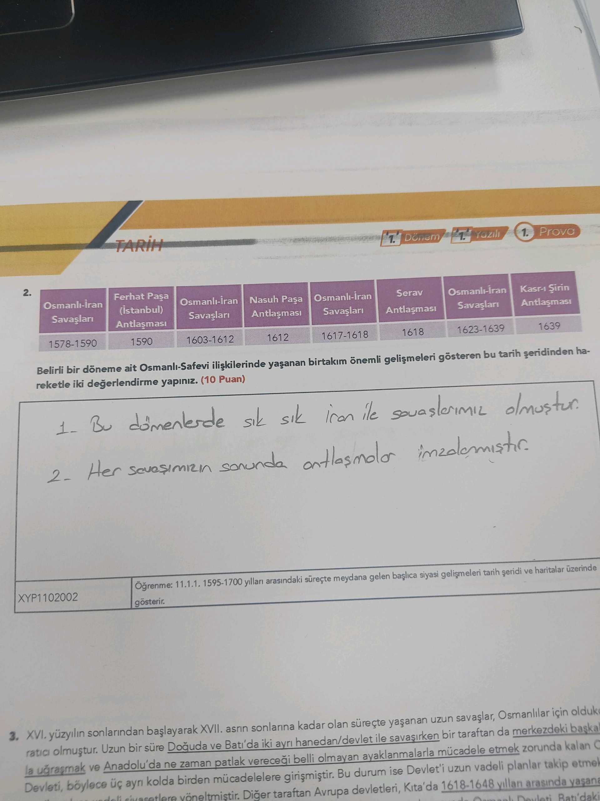 1. Dönem 1. Yazılı 1. Prova 2. Soru