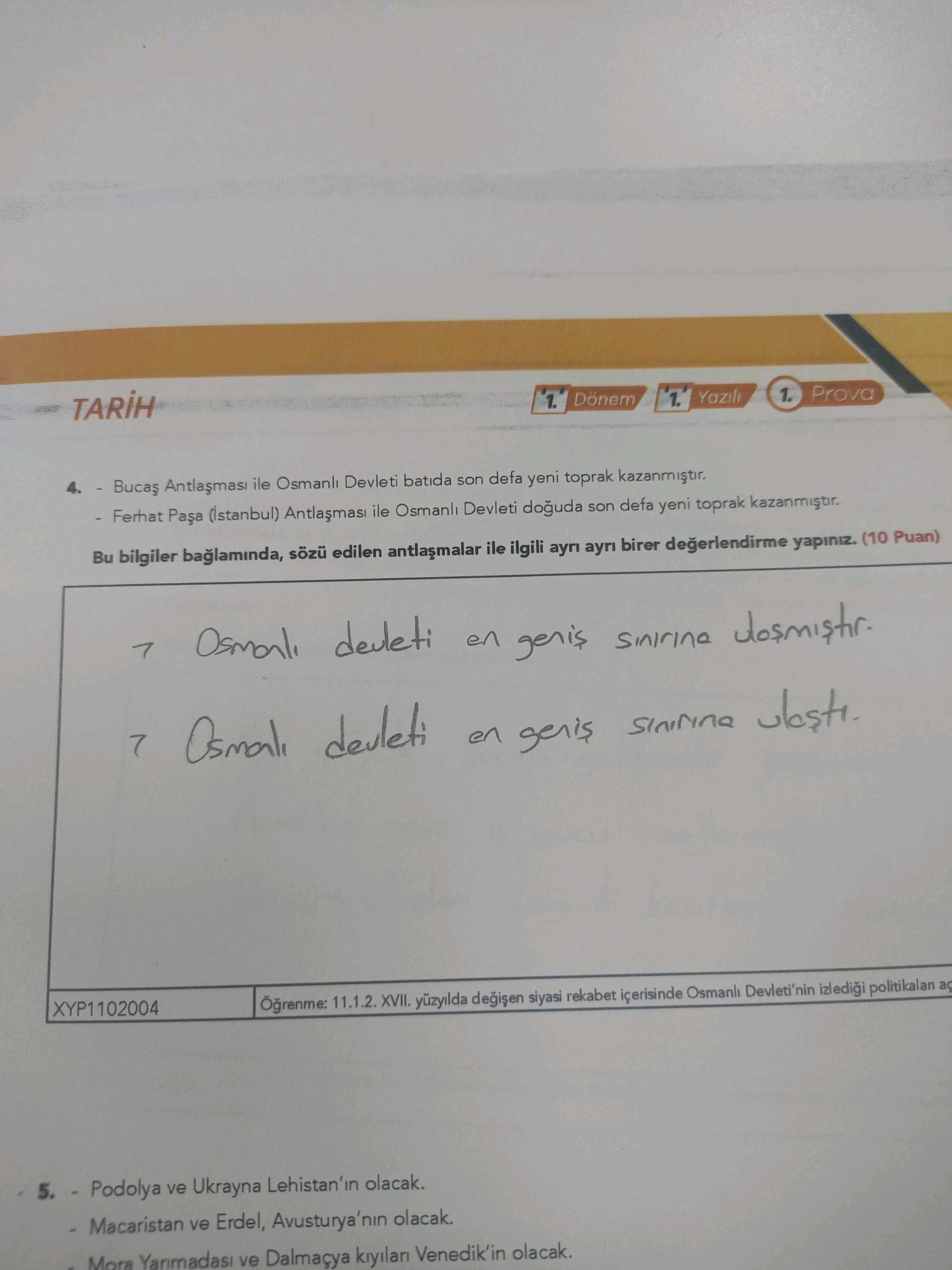 1. Dönem 1. Yazılı 1. Prova 4. Soru