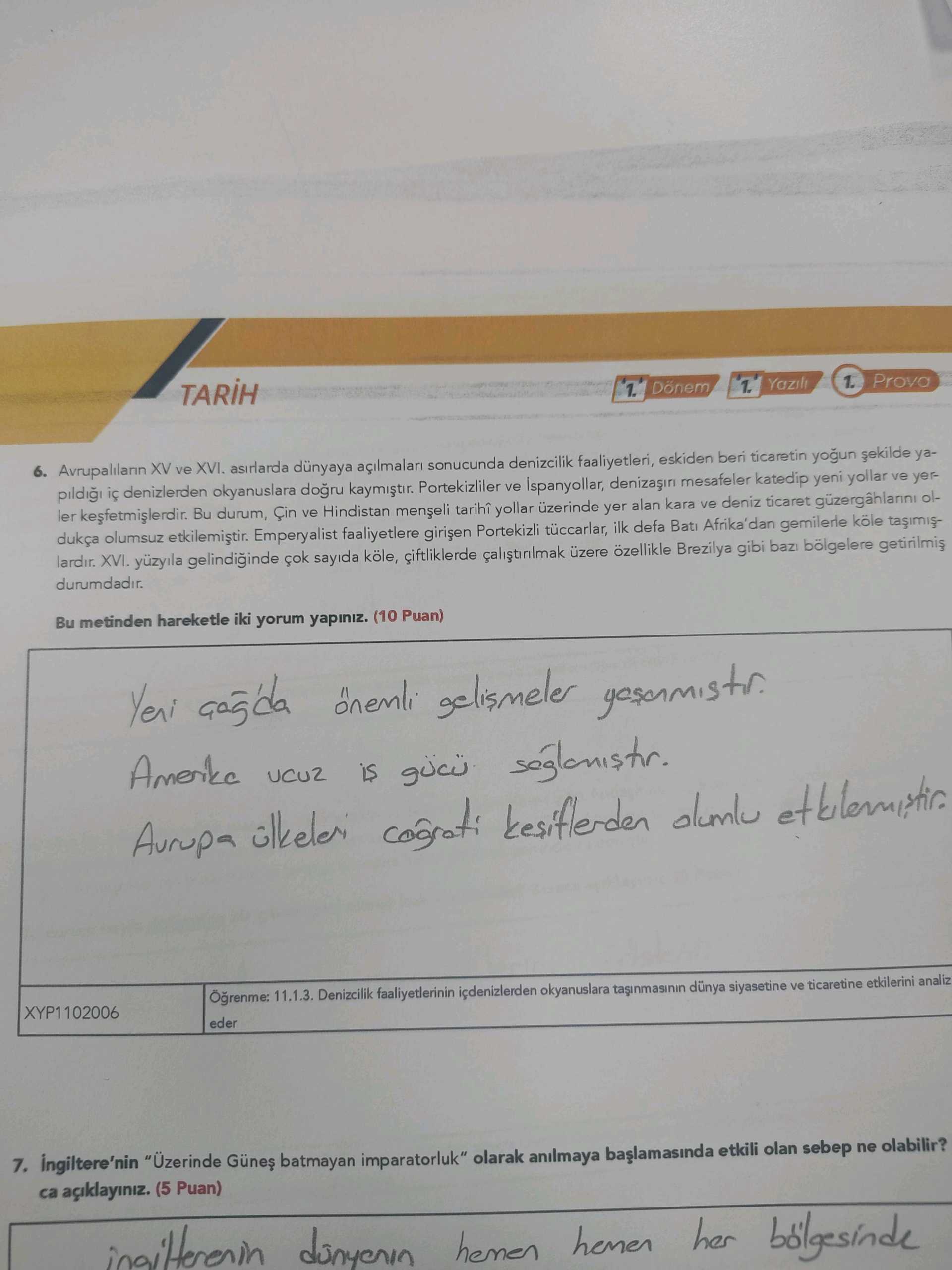 1. Dönem 1. Yazılı 1. Prova 7. Soru
