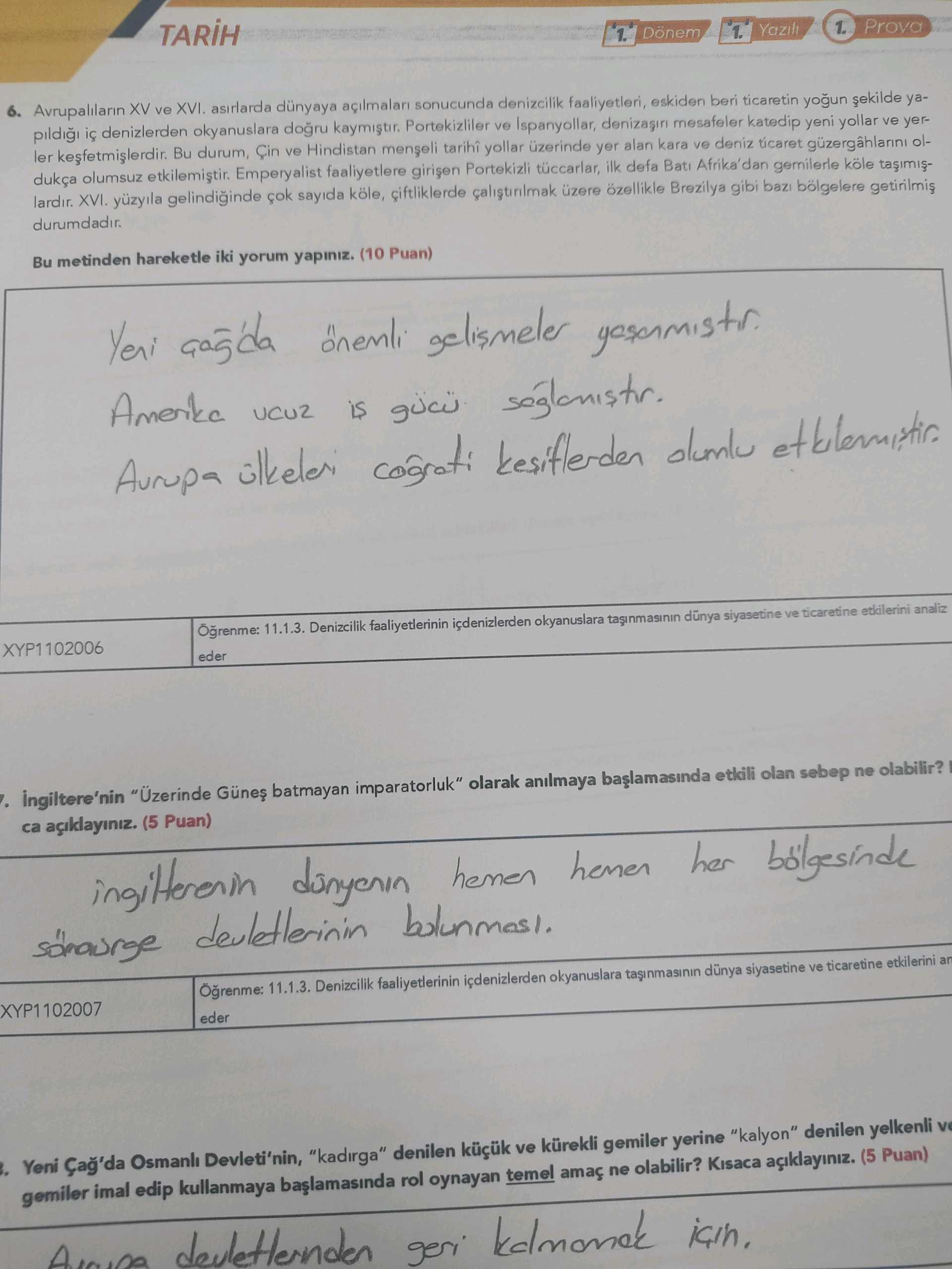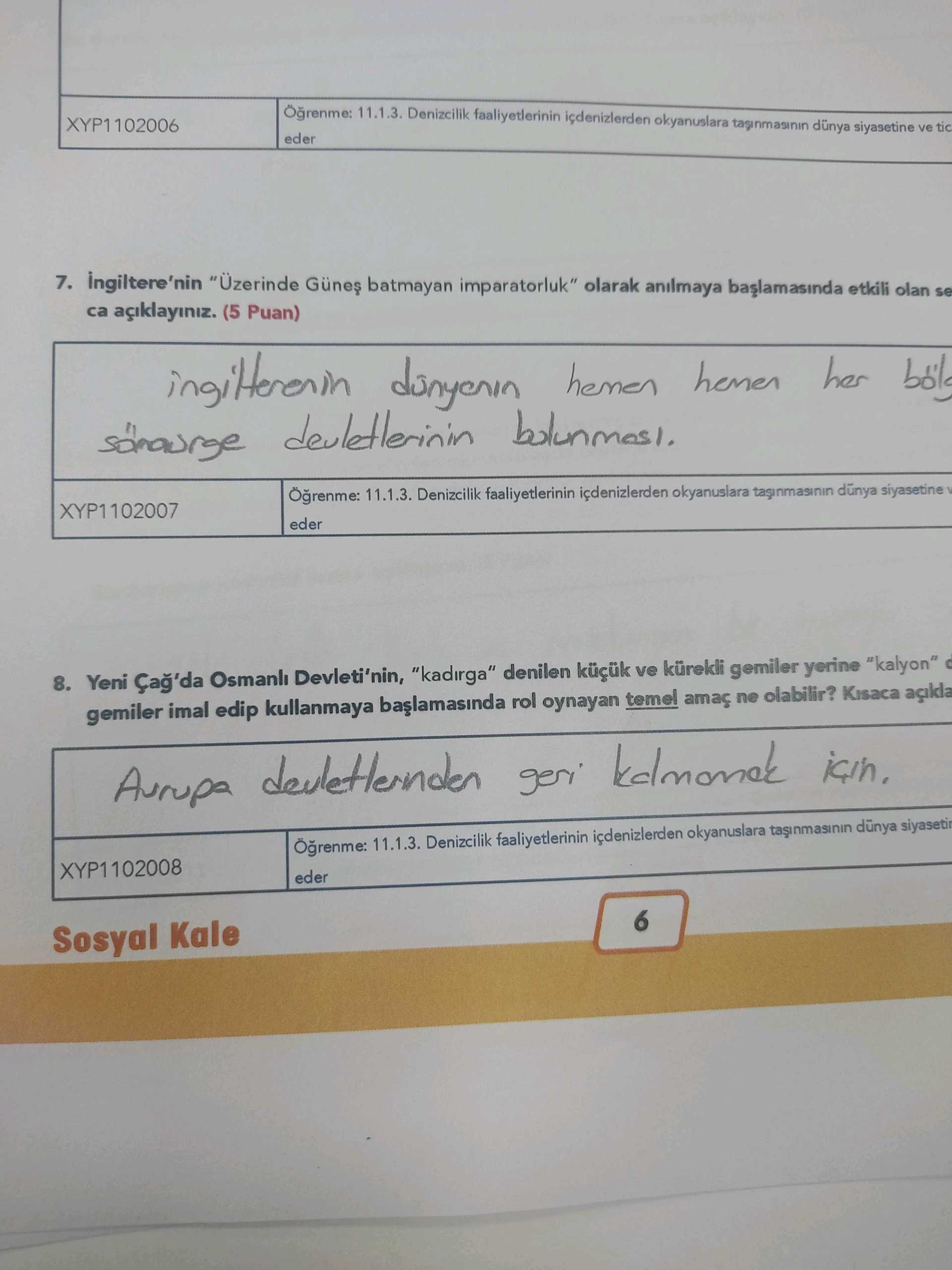 1. Dönem 1. Yazılı 1. Prova 6. Soru