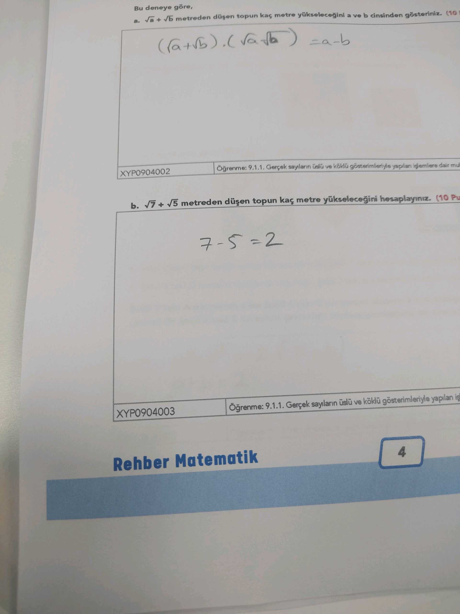 b) (√7+√5)(√7-√5)=7-5=2 → 10 Puan